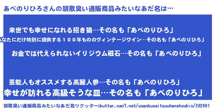 | 男性向けラノベタイトル風あだ名 | 『ノーゲーム・ノーアベノリヒロ』 |