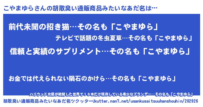 | ヘコむあだ名 | 『こやを』『こやまゆら(小並感)』 |