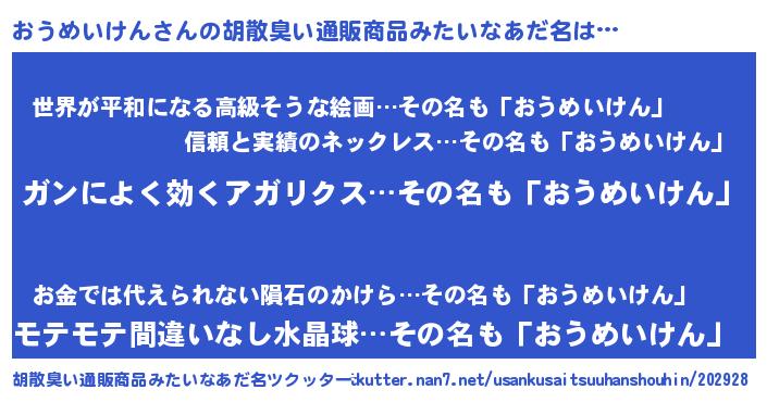 | 意味不明あだ名 | 『自称おうめいけん』 |