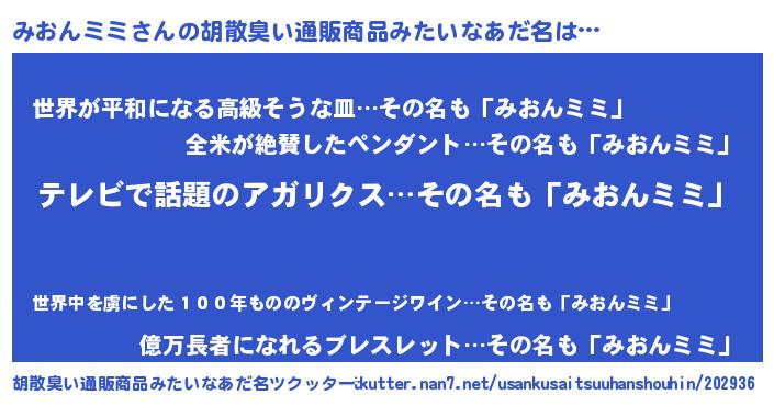 | ヘコむあだ名 | 『なまこ酢』『みおにゅー』 |