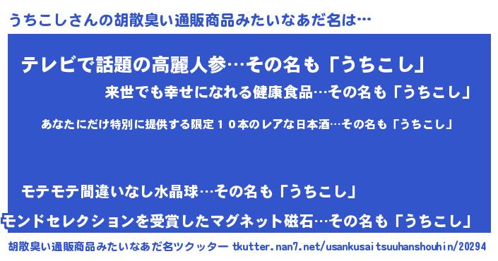 | 意味不明あだ名 | 『住所不定無職うちこし(41歳)』 |