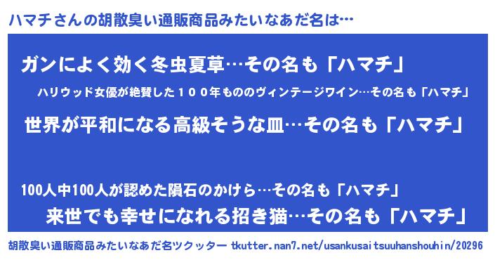 | ヒーロー風カッコイイあだ名 | 『ウルトラハマチマン』『ネオハマチ』 |