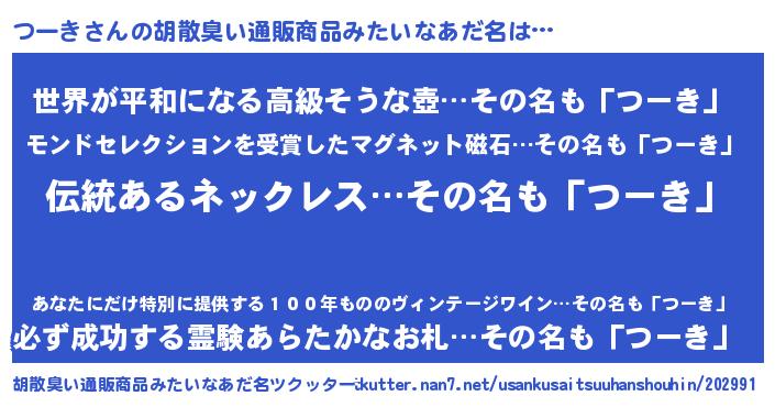 | 意味不明あだ名 | 『とにかく怪しいつーき』 |