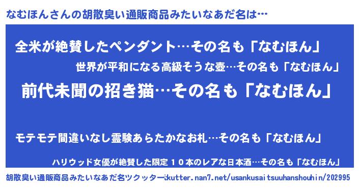 | ヘコむあだ名 | 『なむほん(笑)』『なむぷりん』 |