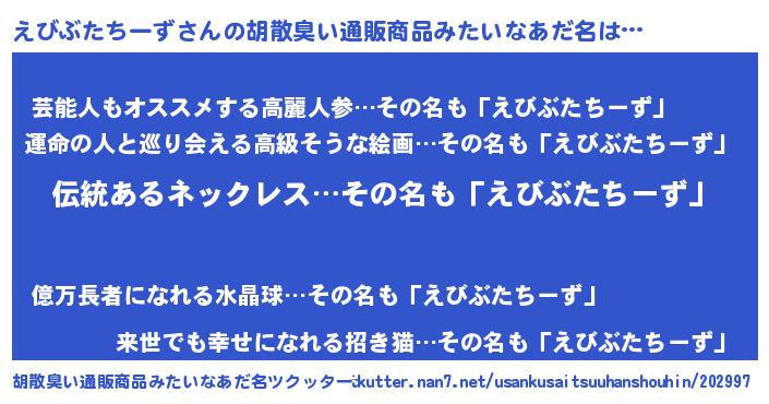 | 意味不明あだ名 | 『とにかく怪しいえびぶたちーず』 |
