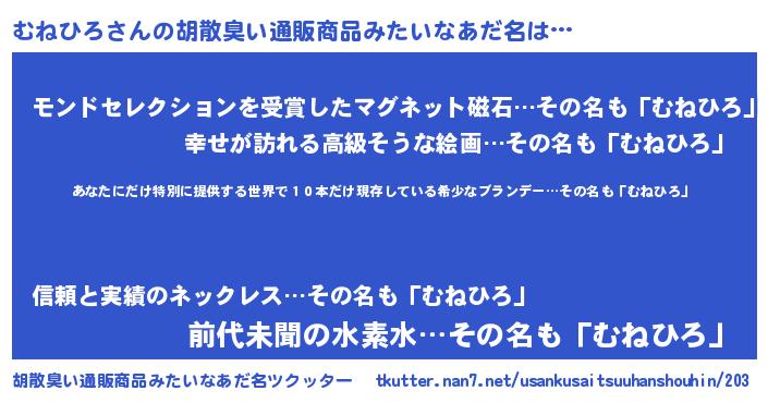 | 意味不明あだ名 | 『住所不定無職むねひろ(85歳)』 |