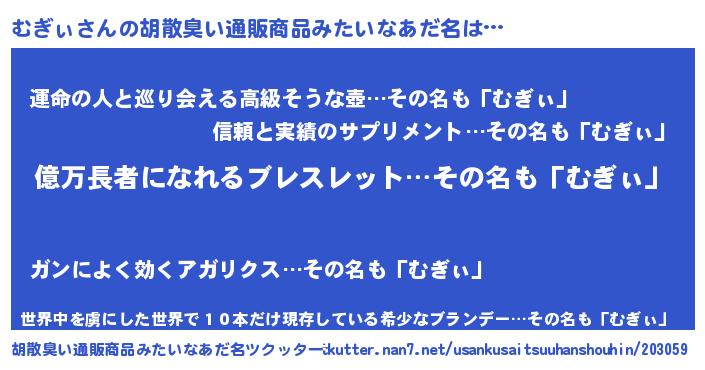 | ヘコむあだ名 | 『むぎふぇ~』『酢こんぶ』『むぎお』 |