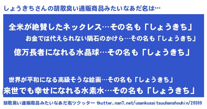 | ヒーロー風カッコイイあだ名 | 『スーパーショウキチ』『幻影騎士ショ』 |