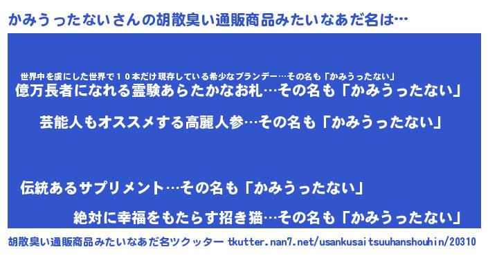 | ヘコむあだ名 | 『かみうったない(小並感)』『かみっふぃ~』 |