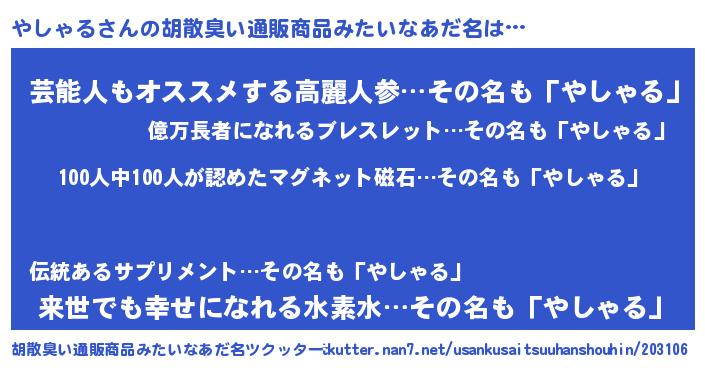 | ヘコむあだ名 | 『やしゃる(笑)』『やしふぇ~』 |