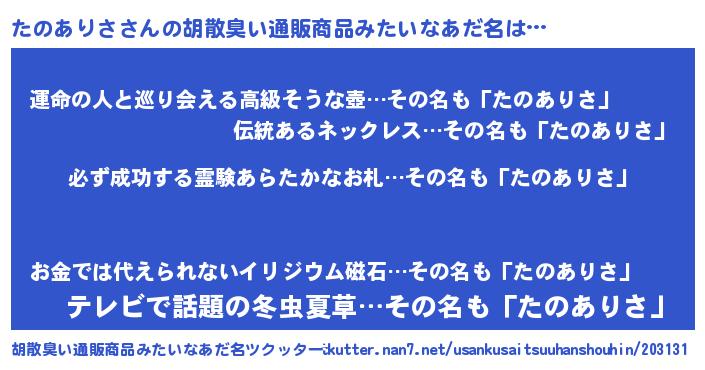 | 意味不明あだ名 | 『ペロリンたのありさ』『自称たのありさ』 |