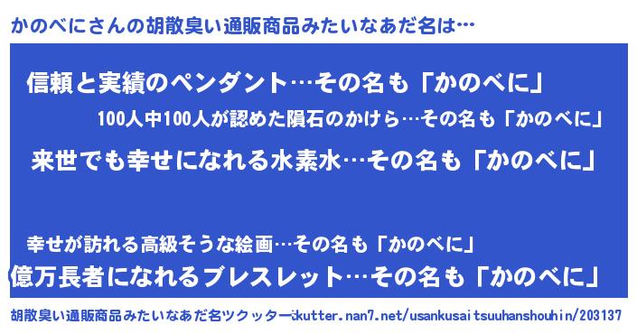 | ヘコむあだ名 | 『かのべに(遠い目)』『かのっちょ』 |
