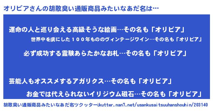 | 恥ずかしいあだ名 | 『プリティーオリビア』『オリっちょ』 |