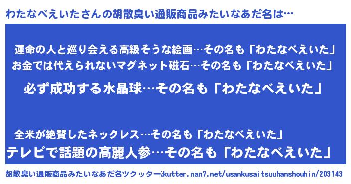 | 欧米人風あだ名 | 『マイケルわたなべえいた』 |