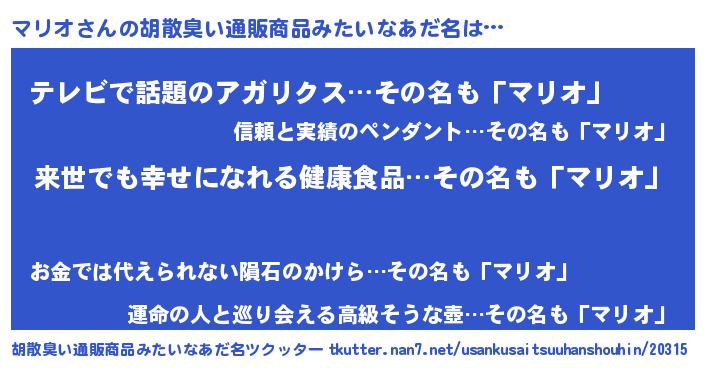 マリオさんの胡散臭い通販商品みたいなあだ名をツクッター!