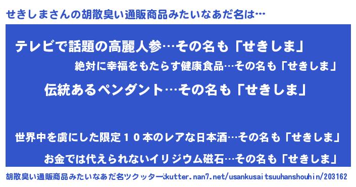 | 意味不明あだ名 | 『とにかく怪しいせきしま』 |