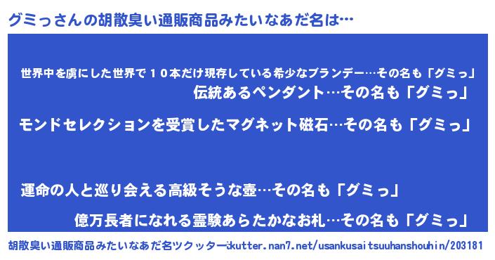 | ヘコむあだ名 | 『グミにー』『グミっぺ』『レバニラ』 |