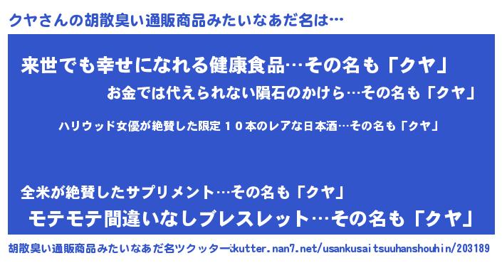 | 意味不明あだ名 | 『住所不定無職クヤ(41歳)』『永久保存クヤ』 |
