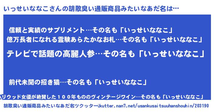 | 意味不明あだ名 | 『自称いっせいななこ』 |