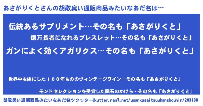 | 意味不明あだ名 | 『自称あさがりくと』 |