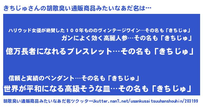 | 男性向けラノベタイトル風あだ名 | 『きちじゅに滅ぼされるだけの簡単なお仕事です』 |