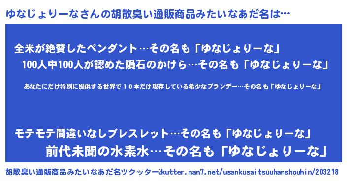 | 意味不明あだ名 | 『住所不定無職ゆなじょりーな(89歳)』 |
