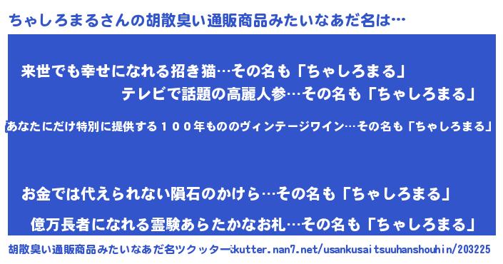| 意味不明あだ名 | 『住所不定無職ちゃしろまる(12歳)』 |