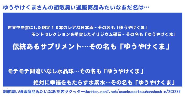 | 意味不明あだ名 | 『とにかく怪しいゆうやけくま』 |