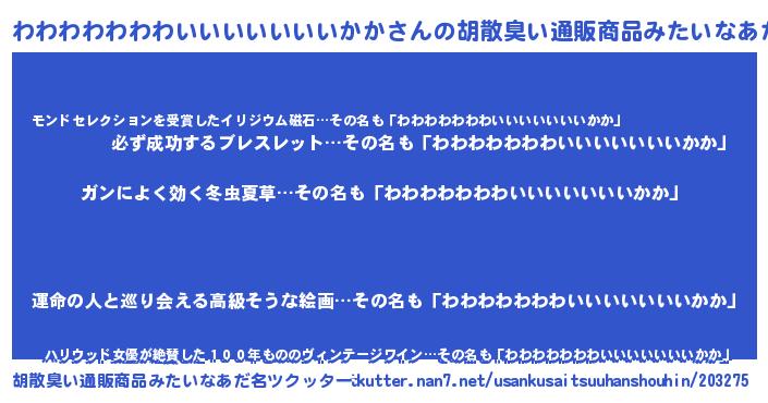 | 意味不明あだ名 | 『自称わわわわわわわいいいいいいいかか』 |