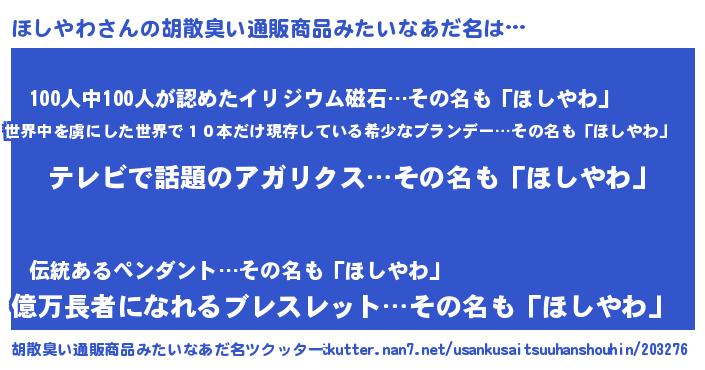 | ヒーロー風カッコイイあだ名 | 『サイバー戦士ホシヤワ』『仮面ホシダー』 |