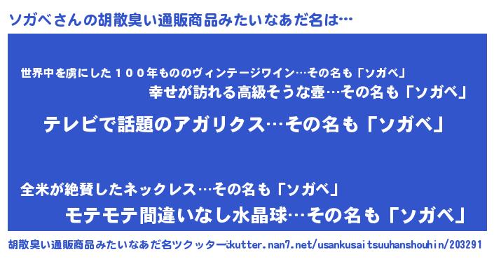 | 意味不明あだ名 | 『自称ソガベ』『住所不定無職ソガベ(6歳)』 |