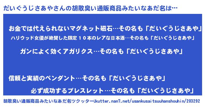| 意味不明あだ名 | 『自称だいぐうじさあや』 |
