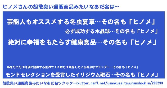 | ヘコむあだ名 | 『ヒノメ(笑)』『ヒノっふぃ~』 |