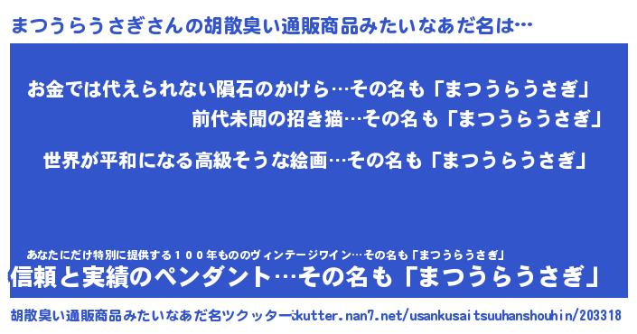 | ファンタジー風あだ名 | 『エターナルマツウラウサギー』 |