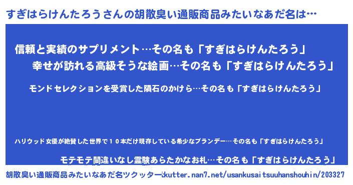 | ポケモン風あだ名 | 『スックウザ』『ヒスギハラケンタロウ』 |