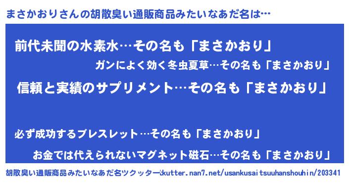| 男性向けラノベタイトル風あだ名 | 『マサカオリスレイヤー』 |