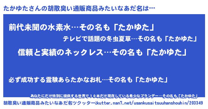 | 意味不明あだ名 | 『とにかく怪しいたかゆた』 |