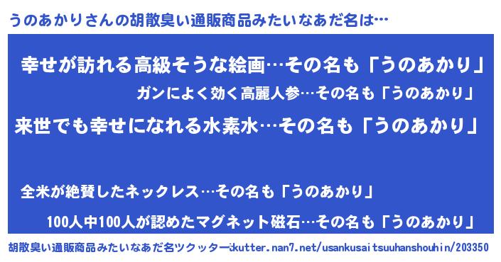 | 意味不明あだ名 | 『永久保存うのあかり』『自称うのあかり』 |