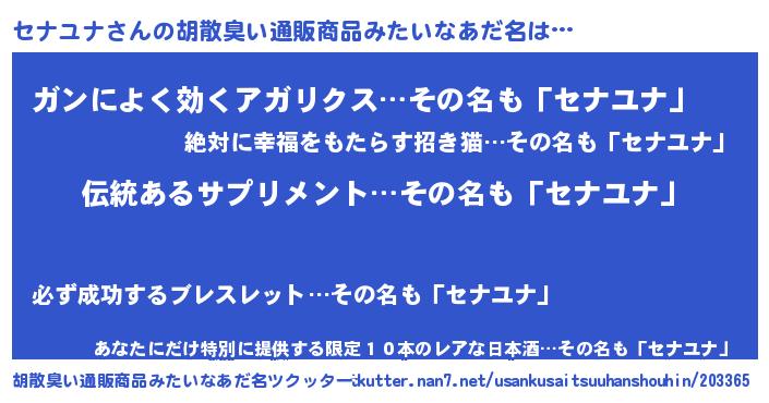 | 意味不明あだ名 | 『とにかく怪しいセナユナ』 |