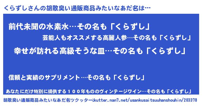 | 女子向けラノベタイトル風あだ名 | 『くらずしの雑貨屋さん』 |