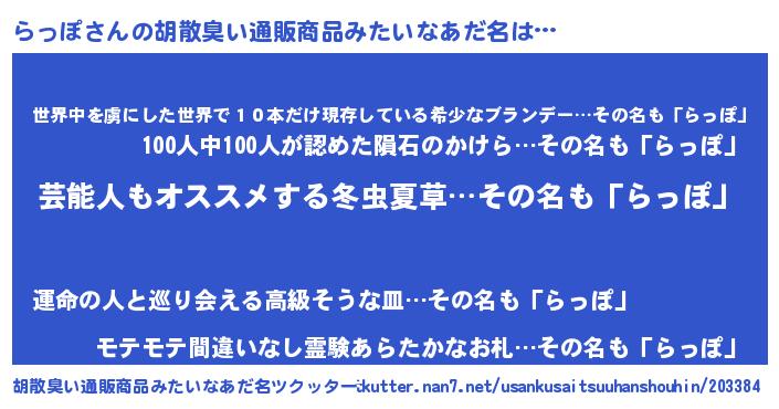 | 恥ずかしいあだ名 | 『ラッポデラックス』『プリティーらっぽ』 |