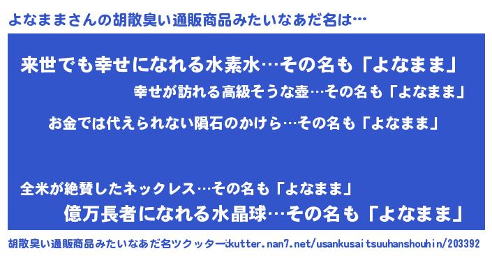 | 欧米人風あだ名 | 『ダニエルよなまま』『マイケルよなまま』 |