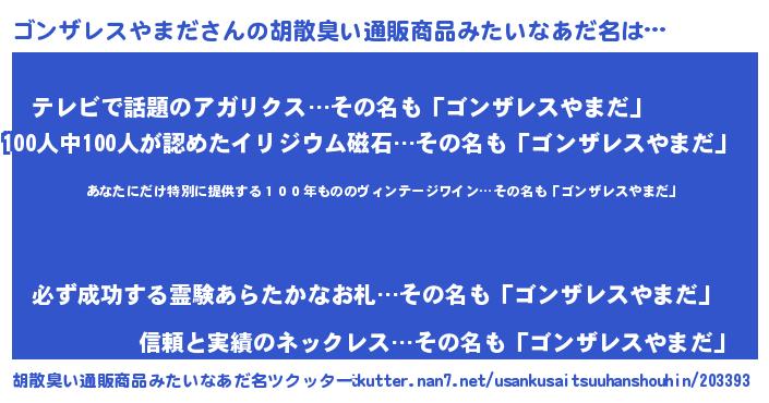 | 男性向けラノベタイトル風あだ名 | 『ゴンザレスやまだ~年齢イコール彼女いない歴の魔法使い~』 |