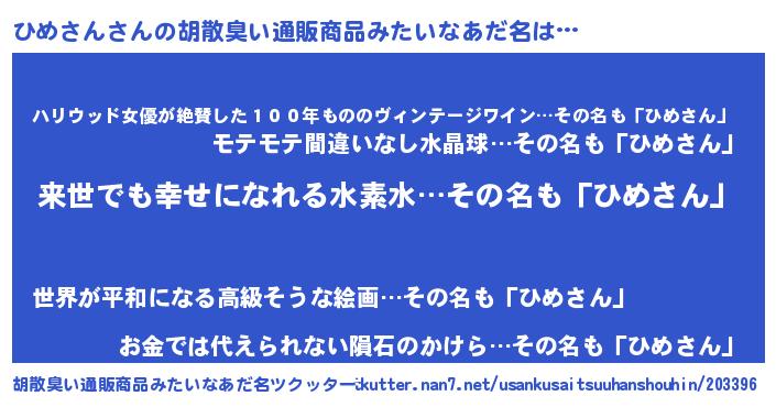 | 男性向けラノベタイトル風あだ名 | 『ひめさんという概念が存在しない退屈な世界 』 |