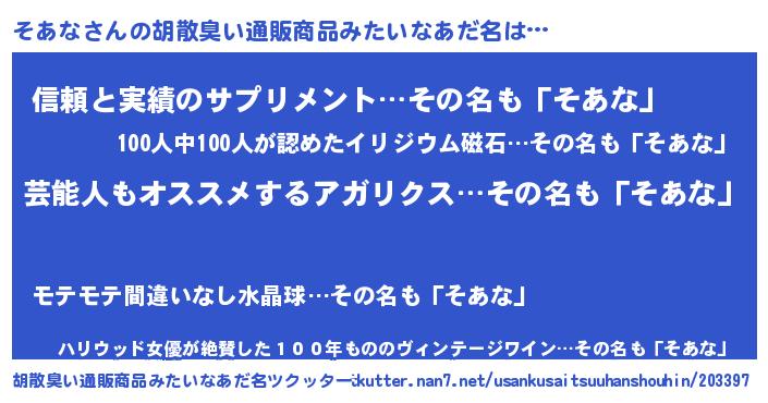 | 意味不明あだ名 | 『自称そあな』『とにかく怪しいそあな』 |