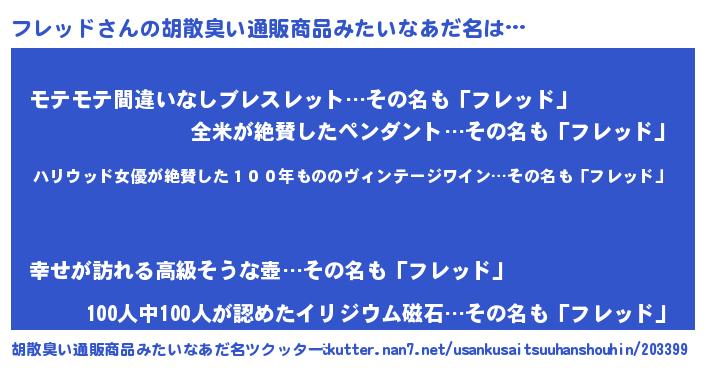 | 意味不明あだ名 | 『住所不定無職フレッド(7歳)』 |