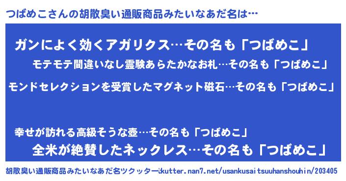 | ヘコむあだ名 | 『つばを』『つばにー』『豆乳』 |