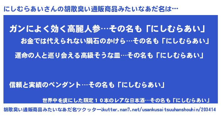 | 意味不明あだ名 | 『にしむらあいフォーエバー』 |