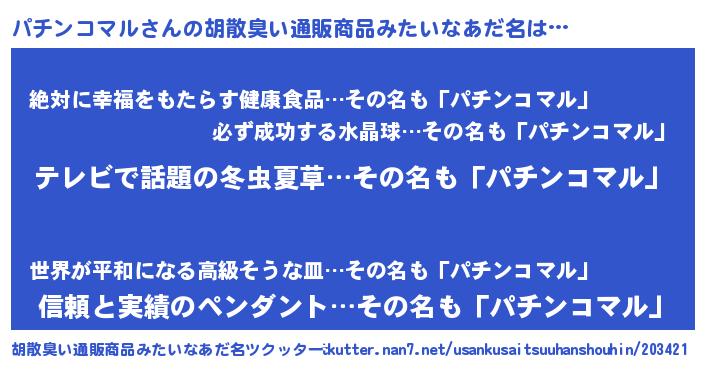 | 意味不明あだ名 | 『自称パチンコマル』 |