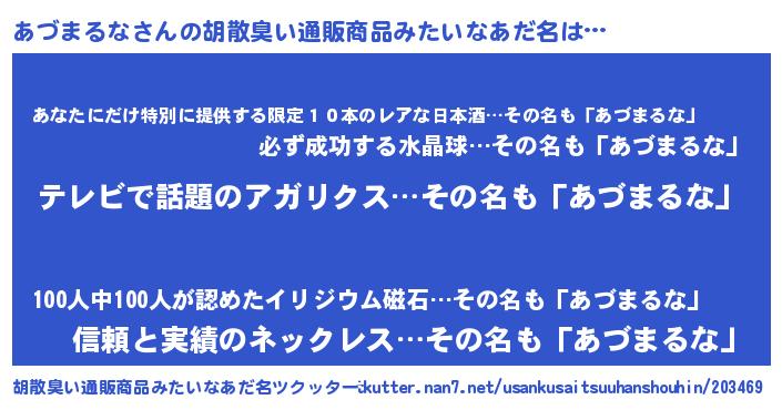 | ヒーロー風カッコイイあだ名 | 『最強戦士アヅマルナ』『仮面アヅダー』 |